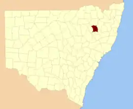HallTamworth Regional Council30°45′54″S 150°58′04″E / 30.76500°S 150.96778°E / -30.76500; 150.96778 (Hall Parish)