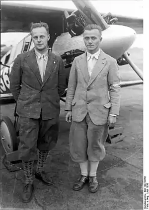 | Rudolf Neininger (left) with his crewman in front of the D-18 during Challenge 1930 | |
