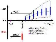 where operating profit and launch costs are the appropriately discounted range of cash flows to time T0.[11]