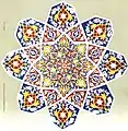 The mausoleum of Shaikh Daud Bandagi Kirmani in Shergarh, Punjab is an example of early Mughal architecture. The architect of the mausoleum, completed in AD 1580, was Ustad Baazid. His description of designing and building the shrine is extant in the 17th century hagiography of the saint, Maqamat-e-Daudi. The interior of the Husht Phelo (Octagonal) shrine is decorated with intricate Naqashi (floral and geometric wall frescoes). The eight interior alcoves and panels of the shrine are embellished with different naqashi patterns suggesting the unique signature work or style of the artists and artisans who with immense spiritual devotion built and decorated the shrine more than four centuries ago. On each of the eight interior lower alcoves are Persian couplets by Shah Abul Muali extolling the virtues of the saint. The grave of Daud Bandagi is in an enclosure located in the center of the shrine with the graves of six of his lineal descendants (Sajjada Nashin's) on either side. The exterior of the shrine has panels of intricate stucco tracery Manabat Kari on all sides including the outer alcoves. The shrine, today, is under the care of the Auqaf Department and the Archeology Department of the Government of Punjab, Pakistan. In the 1980s extensive restoration work was done on the mausoleum by the Archeology Department. The work inside the shrine was mainly on the preservation of the Naqashi frescoes.[2][3]