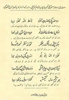 Three days after this I came from Láhór to Sher Gadh, and attended his reverence for four days, seeing and hearing such things as had never entered my imagination, and the mystery of the saying, “When they desire the remembrance of God &c.” became manifest. And I extemporized some verses, which I presented, and they were accepted. The verses are as follows:—