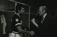 He went 51 with nine saves and a 2.50 earned run average (ERA) with the Angels in 1971 before being traded to the Twins for Leo Cárdenas at the Winter Meetings on November 30.[5] During his time as a player representative with the Twins LaRoche had a reputation as a troublemaker. According to Twins public relations director Tom Mee, LaRoche "complained about everything. In fact, they filed a grievance about the choice of ice cream we had in the clubhouse. [He] loved to agitate, and it was not right." According to Rod Carew, "He was always negative about everything in the locker room. I finally got tired of it one night...we were having a team meeting and he was constantly interrupting people. I said to him, 'Just shut up and listen to what the guys have to say.' He asked what I was going to do about it, so I challenged him to a fight. There was a broom closet in the back of the clubhouse. I opened its door, turned on the light and said, 'Come on, let's go in.' As soon as he walked in, I turned off the light, closed the door and whaled away at him." According to Twins teammate Bert Blyleven, "A reporter asked him why he wanted to be player rep and Dave said, 'Because all the player reps under Calvin Griffith get traded.'"[6] He was traded from the Twins to the Chicago Cubs for Bill Hands, Joe Decker and minor‐league pitcher Bob Maneely on December 1, 1972.[7]