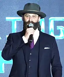 David Diamante (born November 8, 1971) is an American ring announcer.[2] A popular ring announcer with DAZN, Diamante has been coined "The Voice of Boxing" by BBC Sport.[3] He is widely known for his trademarked catchphrase "The fight starts now!", his long locks, and his distinctive announcing style in which he repeats each fighter’s last name.[4][5]