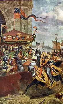 Many historians believe that Lindsay was also the organiser for the Battle of the Clans at Perth in 1396. Additionally, Lindsay was a noted jousting champion who fought the English champion Lord Welles in a remarkable duel on St. George's Day 1390. In the duel, Lindsay unhorsed Welles so easily that the crowd began yelling that he had nailed himself to his saddle. To prove he had not, Lindsay jumped off his horse and then back on, while still wearing his full suit of armour. After he realized Welles was wounded he rushed to his aid and helped him to a nearby hospital. He visited Welles every day while he was recovering and they became good friends.