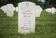 Born May 20, 1944, in Columbus, Georgia. He was a Boy Scout with Troop 8 in Eustis, Florida and earned its highest rank of Eagle Scout.[1] Died on April 23, 2001, from cancer, Walker was 56 years old and was being treated at University of Texas M.D. Anderson Cancer Center in Houston, Texas. His wife, the former Paige Lucas, and two adult sons from a previous marriage, Michael and Mathieson, survived him. He was interred at Arlington National Cemetery on May 24, 2001.