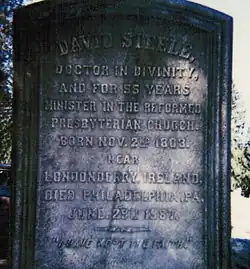 2. 1 2 Steele, David. Reminiscences. Historical and Biographical of a Ministry in the Ref'd Presbyterian Church, During Fifty-Three years. Archived 2011-06-10 at the Wayback Machine Philadelphia: William Syckelmoore, 1883.