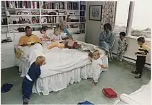 Valdez's most famous photograph of Bush came in the summer of 1987. He had been requested by Life to shoot a candid picture of the Vice President on vacation. Initially, Bush was against the idea, but relented when he realised Valdez's involvement. By now, Valdez was exceptionally close with the Bush family, and was invited by Barbara Bush to Walker's Point in Kennebunkport, Maine. The photograph, taken at 6 a.m., shows the Bushes in bed, with six of their grandchildren, alongside Marvin Bush's wife Margaret. It was an instant hit, as Life put the image across its pages and later reprinted it in special editions of the magazine. It is also by far, Valdez's most republished image of his career, and in an interview with NBC News, he felt the way it resonated with the general public was that it was in line with what Bush always said were the most important things in life – family, faith and friends.[4]