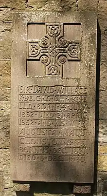 Sir David Wallace, KBE, CBE, CMG., LL.D, FRCSEd. (14 July 1862 – 21 April 1952) was a Scottish surgeon working in Edinburgh, with a particular interest in urological surgery. During the Boer War he was in charge of the Edinburgh South African Hospital, an experience which impressed upon him the importance of the Red Cross movement in reducing and mitigating the horrors of war. Becoming active in the British Red Cross Society, he was instrumental in forming the Edinburgh branch and was its Chairman for over 30 years.  He was knighted in 1920 and elected President of the Royal College of Surgeons of Edinburgh in 1921.[1]