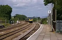 Dawlish Warren railway station serves the seaside resort and holiday camps of Dawlish Warren in Devon, England; it is located at the mouth of the River Exe. The station is on the Exeter to Plymouth line, 10 miles 46 chains (17.0 km) down the line from Exeter St Davids and 204 miles 37 chains (329.1 km) from London Paddington via Box.[1] From here to Teignmouth, the South Devon Railway sea wall runs alongside the Riviera line railway.