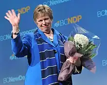 Her stint as interim leader ended upon the election of Adrian Dix in April 2011;[16] she was subsequently named assistant deputy speaker by Dix.[17] In August 2011 she announced she would not run again in the next provincial election; she continued to serve as MLA until the end of her term in 2013.[18]