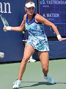 Dayana Oleksandrivna Yastremska (Ukrainian: Даяна Олександрівна Ястремська; born 15 May 2000) is a Ukrainian professional tennis player. She has a career-high ranking of world No. 21 by the Women's Tennis Association (WTA). Yastremska has won three WTA Tour titles in five final appearances.