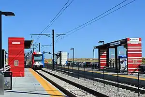 Daybreak Parkway station is a light rail station in the Daybreak community of South Jordan, Utah, United States, served by the Red Line of the Utah Transit Authority's (UTA) TRAX light rail system. The station is the southwestern terminus of the Red Line, which provides service from this station to the University of Utah.