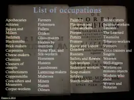 Syllabus artificum de quorum Morbis fit mentio - List of craftsmen whose diseases are mentioned; it lists 67 employments and working activities.
