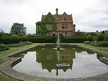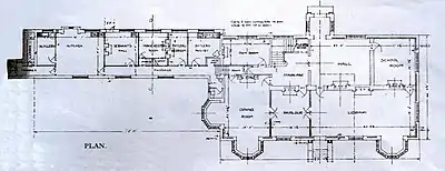 It was built for Frederick Arthur Denny (who had made his fortune in pork and bacon) and designed in a refined Jacobean style by the architects Blow and Billerey. It is built on the site of the former Old Horwood, a 300-year-old farmhouse previously known as Rectory House. Old Horwood was a building of late sixteenth-century construction, consisting of two storeys and an attic, with walls of timber and brick, which a Colonel Daucy occupied for a period and local folklore suggests that his ghost haunts the present house. It was extended in the later seventeenth century, and enlarged in the nineteenth century. When the estate was purchased by Denny it consisted of 482 acres (1.95 km2), two farms, eleven cottages, the village hall, parkland and woods. The purchase of the estate made the owner the Lay Rector or patron of St Nicholas' church, Little Horwood.[2] (In the Church of England, the legal right to appoint or recommend a parish priest is called an advowson, and its possessor is known as a patron.)