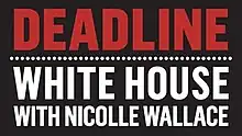 Deadline: White House is an American news and politics television program airing weekdays from 4 to 6 p.m. ET on MSNBC. It is hosted by NBC News senior political analyst Nicolle Wallace.[2]