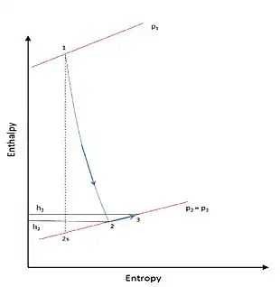 Figure 1. Enthalpy vs. Entropy diagram for stage flow in turbine