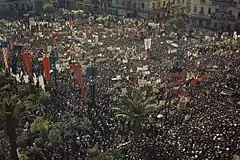 The shootings began when the marchers had arrived at the Tomb of the Unknown Soldier, in front of the Royal palace, above Syntagma Square. They originated from the streets, from the building of the General Police Headquarters, from the Parliament (Vouli), from the Hotel Grande Bretagne (where international observers had settled), from other governmental buildings and from policemen on the street. Among many testimonies, N. Farmakis, then a fifteen-year old member of the Anti-EAM Organization X participating in the shootings, described that he saw the head of the police Angelos Evert giving the order to open fire on the crowd, by means of a handkerchief waved from the window. The sharpshooters had been given a standing order, according to Farmakis, "Don't fire as they are marching, at least up to the Tomb of the Unknown Soldier. When they march to the Tomb of the Unknown Soldier, open fire!"[4] Although there are no accounts hinting that the crowd indeed possessed guns, the British commander Woodhouse insisted that it was uncertain whether the first shots were fired by the police or the demonstrators. LIFE photographer Dmitri Kessel, who witnessed the shooting, reported that the "police fired without provocation".[5] More than 28 demonstrators were killed, and 148 were injured. This signalled the beginning of the Dekemvriana (Greek: Δεκεμβριανά, "the December events"), a 37-day period of full-scale fighting in Athens between EAM fighters and smaller parts of ELAS, and the forces of the British army and the government.