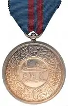 Delhi Durbar Medals were instituted by the United Kingdom to commemorate the Delhi Durbar where the new Emperor of India was proclaimed, in 1903 for Edward VII, and in 1911 for George V.[1] On both occasions the medals were one and a half inches in diameter and were awarded in both gold and silver.[2] They were worn in date order alongside Coronation and Jubilee medals on the left chest, suspended from a ribbon one and a quarter inches wide.[3] These Royal commemorative medals were worn before campaign medals until November 1918,[4] after which the order of wear was changed, with them now worn after campaign medals and before long service awards.[5]