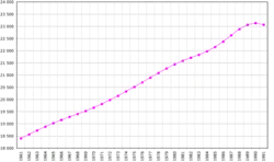 | 1980[13] | 22,359,500 | 382,120 | 197,369 | 184,751 | 17.1 | 8.8 | 8.3 | 2.14 | 5,776,387 |