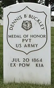 Denis (or Dennis) Buckley (c. 1844 - July 20, 1864) was a Canadian-born soldier who fought in the American Civil War. Buckley received the country's highest award for bravery during combat, the Medal of Honor, for his action during the Battle of Peachtree Creek in Georgia on July 20, 1864. He was honored with the award on April 7, 1865.[1][2][3]