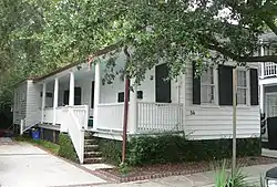 Commonly known as the Denmark Vesey House, the house located at 56 Bull Street in Charleston, South Carolina was for a long time thought to be the house once inhabited by black abolitionist Denmark Vesey. Vesey's home, listed as 20 Bull Street under the city's former numbering system, is now evidently gone. A nearby home, most likely built in the 1820 and currently numbered 56 Bull Street, was thought in the 1970s to have been the home of Denmark Vesey, and it was designated as a National Historic Landmark in 1976 by the Department of Interior.[2][3][4] Vesey was hanged on July 2, 1822 and his body was never found.[5] Despite these findings, the house has continued to be listed as a National Historic Landmark[6] and is on the National Register of Historic Places.[7]