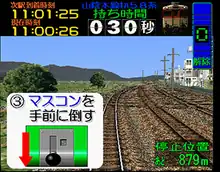 Densha de Go![lower-alpha 1] is a 1997 train simulator arcade game developed and published by Taito in Japan. Players are tasked with guiding a train to its destination under a time limit while managing its acceleration and speed limitations. It features real-world train stations and train lines from Japan, including the Yamanote Line and Keihin-Tohoku Line. The game was ported to the PC, Sega Saturn, and PlayStation.