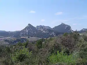 Located on the territory of the communes of Beaumes-de-Venise, Crestet, Gigondas, La Roque-Alric, Lafare, Le Barroux, Malaucène, Suzette, and Vacqueyras; the Dentelles de Montmirail were an important natural frontier during Antiquity between the tribes of the Memini in the south, and the Voconces in the north.[2]