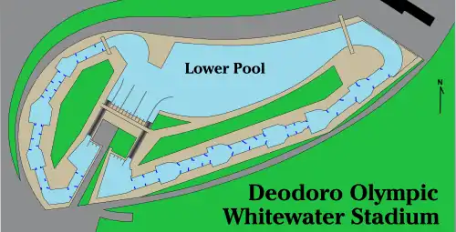 The Deodoro Olympic Whitewater Stadium is a whitewater paddling venue, constructed to host the canoeing and kayaking slalom events for the 2016 Summer Olympics in Rio de Janeiro. The stadium is part of the 'X-Park' sport complex (which includes BMX and Mountain Bike) located in Deodoro, Rio de Janeiro, Brazil.
