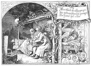 "Der Mond ist aufgegangen" (German for "The moon has risen") is a German lullaby and evening song by Matthias Claudius, one of the most popular in German literature. Also known under the name Abendlied (German for "evening song") it was first released in Musen-Almanach in 1779, published by Johann Heinrich Voß.[1] In 1783, Claudius published the poem with a modification to verse six in Asmus omnia sua secum portans oder Sämmtliche Werke des Wandsbecker Bothen IV. Theil.[2]