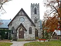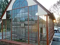 Derry Session House and Enclosure is a historic site located on the grounds of Derry Presbyterian Church at Derry Township, Dauphin County, Pennsylvania. It consists of the log Session House, built about 1732, and a glass enclosure, erected in 1929. The hewn log Session House measures 18 feet by 13 feet and is one story high and was built for a Presbyterian session. The glass and steel enclosure measures approximately 24 feet by 19 feet, 6 inches, and sits on a reinforced concrete foundation. The Enclosure, whose construction was originally funded by Milton S. Hershey, was refurbished in 1999.[3]