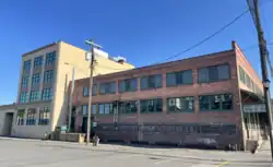 The Desmet Avenue Warehouse Historic District is a 2 acres (0.81 ha) historic district in the Logan neighborhood just outside the city center of Spokane, Washington which was listed on the National Register of Historic Places in 1997. The listing includes six contributing properties,[2] two of which have subsequently been demolished.[3] The district was notable for its tight collection of early-20th century structures over just two city blocks that all served like purposes.[2] Of the four remaining structures, only one is still used for a purpose similar to what it was built to serve. The two easternmost structures are now part of the Gonzaga University campus, which surrounds the eastern half of the district to the north, east and south.[4]