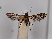 | Deuterocopus honoratus Meyrick, 1921, male holotype, Natural History Museum specimen NHMUK010919172 | |