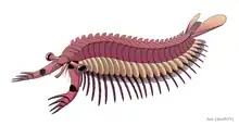 Deuteropoda is a proposed clade of arthropods whose members are distinguished from more basal stem-group arthropods like radiodonts by an anatomical reorganization of the head region, namely the appearance of a differentiated first appendage pair (the 'deutocerebral' pair), a multisegmented head, a hypostome/labrum complex, and by bearing pairs of segmented biramous limbs.[1]