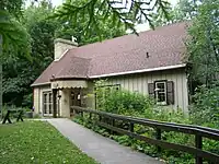The park was founded in 1911.[9] It was home to five resorts, two of which were perched on the west bluff. Few traces of these structures remain, though footings and foundational structures can be found along the South shore and near Prospect Point on the West Bluff. There were also many private residences in the west and south shores of the lake, only four of which remain.[10] At various times the lakeshore hosted water slides, lodges, ferry boat launches and golf courses. The clubhouse of one course sat on the current location of the Park's nature center. By the 1940s, the hotels were all closed, and the Park was retreating to its former natural self.