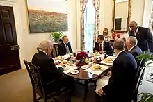 Durbin eating lunch with President Barack Obama, Vice President Joe Biden, and House Majority Leader Steny Hoyer.