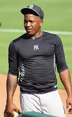 On February 19, 2012, Moreno was traded by the Pirates alongside Exicardo Cayones to the New York Yankees in exchange for A. J. Burnett.[1] Prior to his acquisition, the Yankees had contemplated taking Moreno in the Rule 5 draft.[2] Moreno did not play in a game in 2012 due to injury.[3] In 2013, Moreno split the season between the High-A Tampa Yankees and the Double-A Trenton Thunder, posting a 3-4 record and 3.89 ERA in 24 appearances. The next season, Moreno split the year between Trenton and the Triple-A Scranton/Wilkes-Barre RailRiders, pitching to a cumulative 4.06 ERA with 55 strikeouts in 57.2 innings of work.