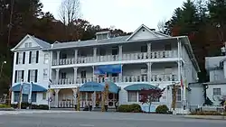 Dillsboro was founded when the Murphy Branch Railroad came to the area in the 1880s. In 1882, the first post office in the area opened. Called the Tunnel Post Office, it was named after the nearby Cowee Tunnel. In 1882, the postmaster, William Allen Dills, built a large home on a hill overlooking the Tuckasegee River,[6] later the home of C.J. Harris and now The Riverwood Shops. The unincorporated village was called Depot, New Webster, and Webster Station until the state legislature had its name officially changed to Dillsboro when the village was incorporated as a town in 1889 to honor William Allen Dills, the town's founder[6] (another source names George W. Dill, an early settler.[7]) One of the oldest buildings in the town dates to the 1870s, before the town was officially founded, now serving as a barber shop. The building is one floor and was built on Front Street when the town was largely farmland. In a relatively short time period, Dillsboro became a thriving town; by 1888, it was the most important town on the Murphy Branch of the Southern Railway in the areas of Industry, with two sawmills, two clay mines, a locust pin company, a corundum crushing plant, a chestnut pole yard, a chestnut corkwood yard, two livery stables, six general stores, a large hotel, and a shoemaker.
