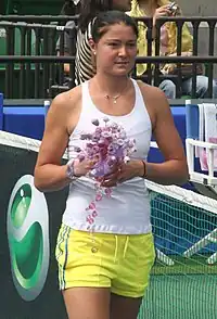 This is a list of the main career statistics of retired Russian professional tennis player Dinara Safina. Throughout her career, Safina won twelve WTA Tour singles titles including three Tier I singles titles at the 2008 German Open, Rogers Cup and Pan Pacific Open,[1] respectively; one Premier Mandatory singles title at the 2009 Madrid Open[2] and one Premier 5 singles title at the 2009 Italian Open.[3] She was also the runner-up at the 2008 French Open[4] and the 2009 Australian Open and French Open as well as a silver medalist in singles at the 2008 Beijing Olympics.[5]