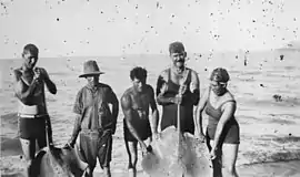 ![]() Fishermen posing with stingrays at Dingo Beach, circa 1925 | |||||||||||||||
