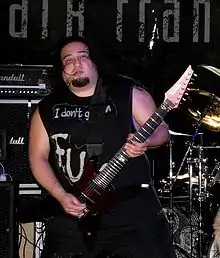 Dino Cazares (born September 2, 1966) is an American musician, known for being the guitarist and one of the co-founders of industrial metal band Fear Factory. He is also the co-founder of the metal bands Divine Heresy, Asesino, and Brujeria. Cazares popularized the use of digital amp modelling processors, as well as the use of seven and eight-string guitars in metal music.