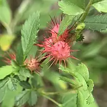 Diplolepis bicolor, also known as the spiny bud gall wasp, is a species of cynipid wasp that induces bud galls on wild roses.[1] This gall wasp is found throughout North America.[2] The galls measure 10 to 12 mm in diameter and have a superficial resemblance to the leaf galls induced by Diplolepis polita.[1]
