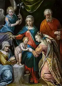 He was probably born in the Hague where his father Claes was a member of a family of artists. He is considered an important member of the internationally known Prague school of Dutch and Flemish painting under Emperor Rudolf II (who reigned from 1576 to his death in 1612).[1] Quade van Ravesteyn was successful enough to own his own house in the Malá Strana in 1598.[2] He was also recorded lending large sums of money in the same period, possibly to subcontract commissions or enable other artists to purchase properties. After Rudolf's death in 1612 he was succeeded by Matthias who died in 1619 and in that year Quade van Ravesteyn was mentioned as a creditor of both emperors, though he may have returned to the Netherlands by then.[2]