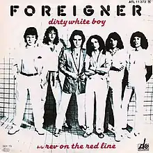"Dirty White Boy" is a song recorded by British-American rock band Foreigner, written by Lou Gramm and Mick Jones, and produced by Roy Thomas Baker, Jones, and Ian McDonald. It was the first single taken from the band's third studio album, Head Games (1979). The B-side, "Rev on the Red Line" has also proven to be very popular among fans, but was never released as an A-side. Lou Gramm's trademark scream at the end of the song is missing from this abbreviated version of "Dirty White Boy". The song spent nine weeks in the Top 40.