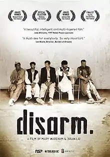 Disarm is a documentary film which spans a dozen countries to look at how, despite a global ban, millions of antipersonnel landmines continue to claim victims daily in more than eighty countries. Defined as a conventional weapon, landmines inflict destruction upon civilian populations for decades after the initial conflict has ended. Disarm juxtaposes government and public opinion- that of diplomats, mine victims, deminers, soldiers, campaigners and aid workers- to explore the issues that both hinder and further the case against the weapon. Visually stunning, Disarm features harrowing footage smuggled out of isolated nation of Burma, scenes from war-ravaged Colombia and Iraq, never-before-seen helmet camera footage shot by Afghan and Bosnian deminers, unprecedented access into warehouses stockpiling millions of Soviet-made mines, and insightful comments by outspoken Nobel Peace Laureate Jody Williams. Looking beyond landmines, Disarm offers a contemporary, intelligent and critical investigation into how weapons systems, war, and the way it is waged are being redefined in the 21st century with devastating consequences.