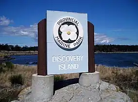 Discovery Island is located off the eastern side of Vancouver Island and is viewable from Ten Mile Point, near Cadboro Bay, and Oak Bay. Discovery Island Marine Provincial Park occupies the southern portion of Discovery Island, 3 miles (4.8 km) east of Oak Bay. The northern portion of the island is part of Discovery Island Indian Reserve 3, under the control of the Songhees First Nation.
