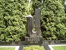 Grave stones of Bartók (center) and Ditta (left).
