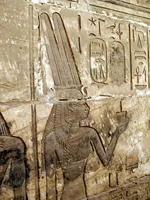 Later, the added title Divine Adoratrice of Amun can be seen to accompany a resurgence of the title God's Wife of Amun, which had fallen into disuse. The God's Wife title was revived during the Twentieth Dynasty, when Ramesses VI's daughter Iset held the office, as well as the additional office of Divine Adoratrice.[1] He reigned from 1145 to 1137 BC. She never married and seems to have been the first of the celibate holders of the office of Divine Adoratrice of Amun, as he stipulated along with the new tradition that she would adopt the daughter of the succeeding pharaoh as her successor at the end of his reign in order to facilitate the transition to the next pharaoh.[2] Generally, the tradition was followed and the position was filled by the daughter of the current king, who was adopted as the daughter of the incumbent Divine Adoratrice.