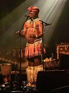 [1][2]Dizu Plaatjies (born 5 February 1959, Lusikisiki, Pondoland, South Africa) is a Xhosa musician best known for being the founder and former leader of the South African group, Amampondo.[2] He is a graduate of the South African College of Music, University of Cape Town where he lectures in African Music.[3]