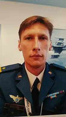 Dmytro Valeriiovych Kolomiiets (Ukrainian: Дмитро Валерійович Коломієць; December 5, 1973, Bila Tserkva, Kyiv Oblast - February 24, 2022, Kryntsiliv, Khmelnytskyi Oblast) was a Ukrainian military fighter pilot (Major). He was awarded the title of Hero of Ukraine (2022, posthumously).
