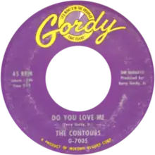 "Do You Love Me" is a rhythm and blues song recorded by the Contours in 1962. Written and produced by Motown Records owner Berry Gordy Jr., it appeared twice on the Billboard Hot 100 chart, reaching numbers three in 1962 and eleven in 1988.[1]